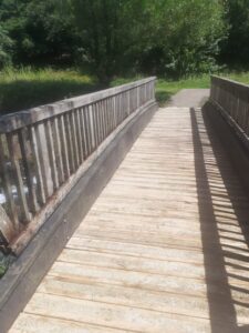 The Garw Valley Community Council’s contractors have recently finished replacing the tread boards on the bridge and power washing the wood to the sides to remove the dirt and moss.